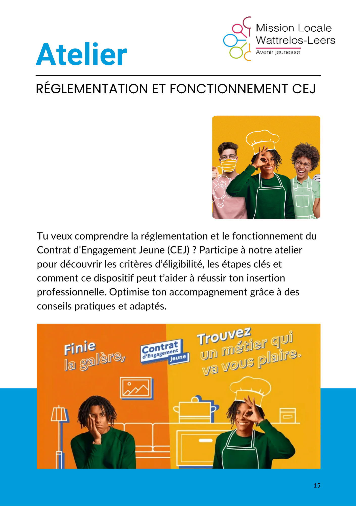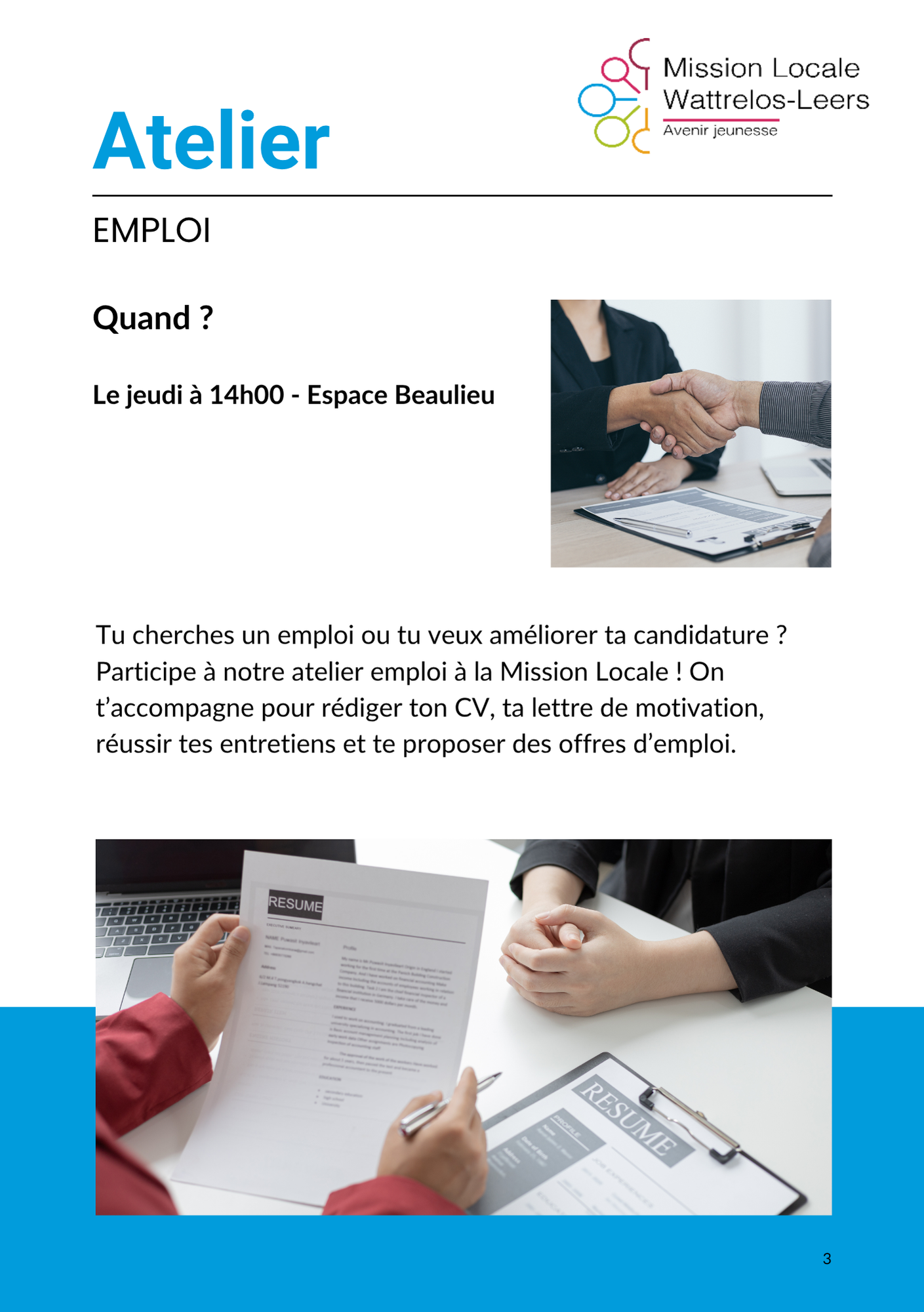 Des ateliers sont proposés chaque jour dans ta Mission Locale pour t’accompagner dans ta recherche d’emploi, de logement, et bien plus encore, afin de renforcer ta confiance en toi et de démarrer sur de bonnes bases.